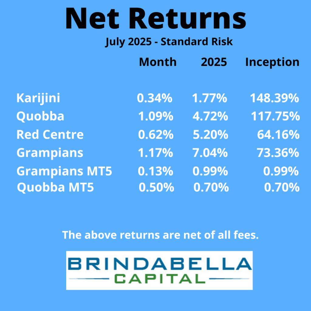 On Friday, 1 August we turned all strategies off due to Trump releasing news on tariffs, again, and US jobs report also being released the same day. From Monday, 4th August all strategies will be turned on.